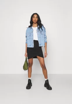 Even&Odd Asymetric Overlap Wrap Mini High Waisted SkirtGonna A TubinoBlack Donna Gonne EV421B09X-Q11